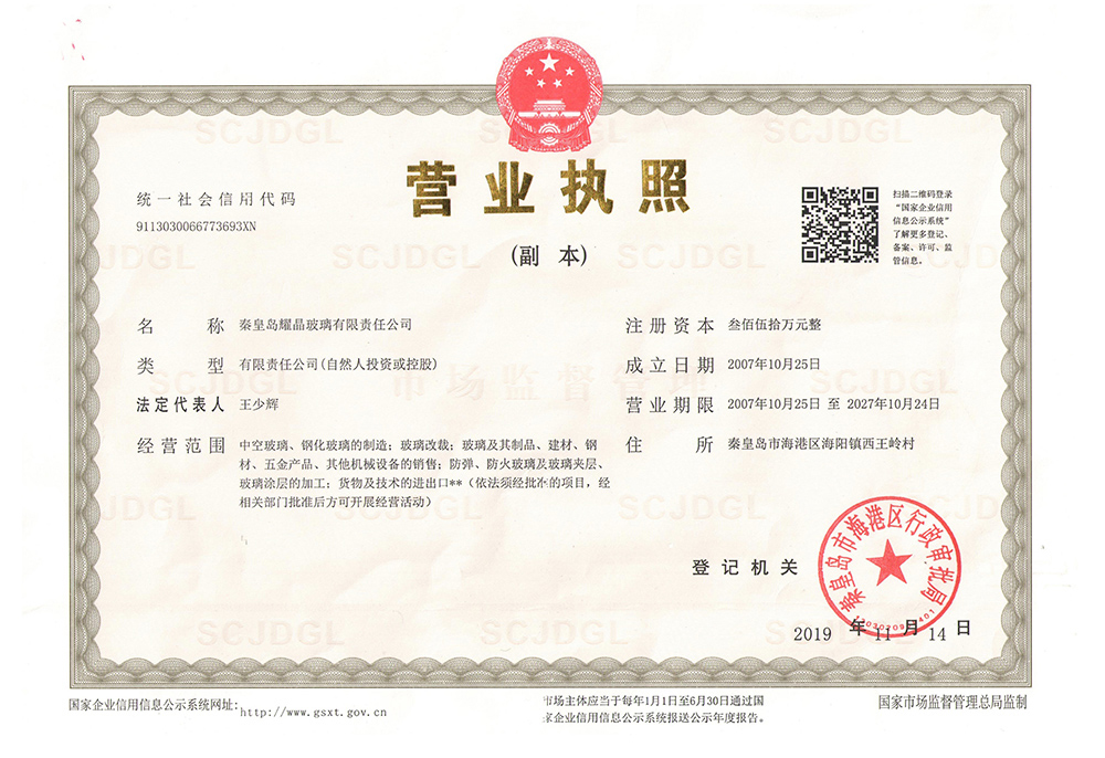 秦皇岛耀晶玻璃有限责任公司,坐落于秦皇岛,公司创始于2007年,本着“诚实守信、客户至上、品质服务”的原则,取得了长足稳固的发展。目前拥有专业化生产基地,占地30余亩,具备独立进出口权,能满足客户多元化建筑工程玻璃订制需求。